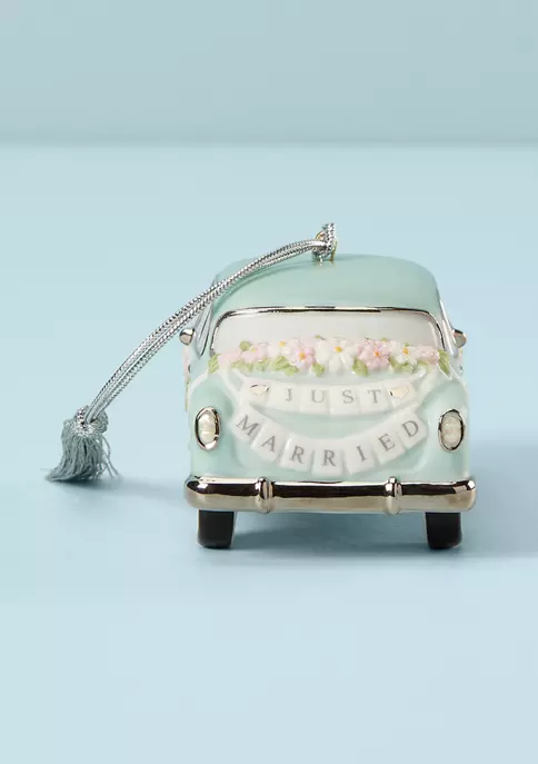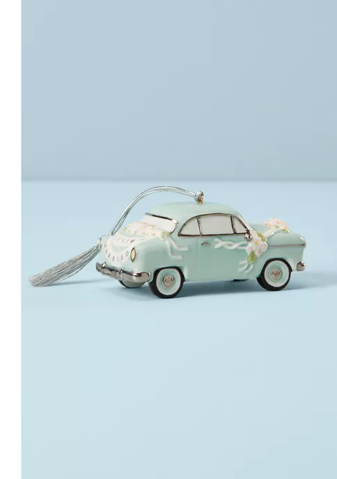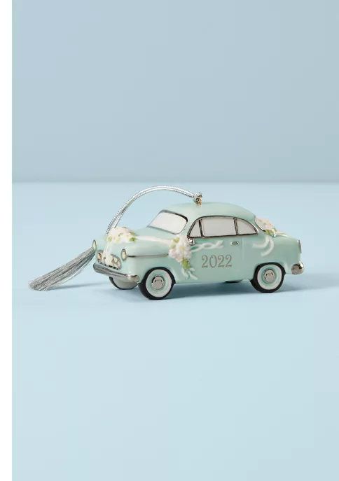 Celebrate the big day with this sweet, retro-inspired ornament. This pretty vintage car is decorated for a just-married couple and features a 2022 date on the side to commemorate the special year.