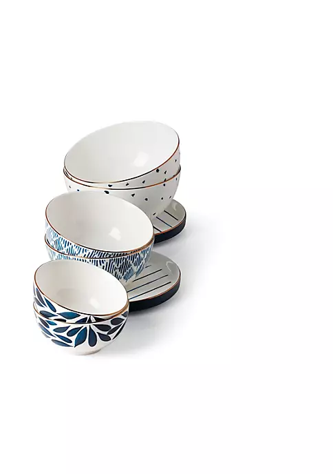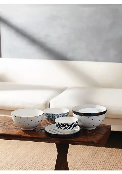 Everyone’s favorite nesting dinnerware set is now available in our Blue Bay collection. Featuring patterns of dots, stripes, ikats, and leaves with a rich blue color, this set stows six bowls and two plates inside. Take it apart to use or keep it together for a statement piece]