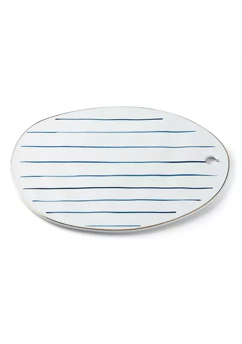 The Blue Bay oblong tray is perfect for laying out cookies and other sweet treats. Featuring a delicate stripe pattern and gold accent, this tray is also ideal to display your Blue Bay teapot with matching sugar and creamer set.