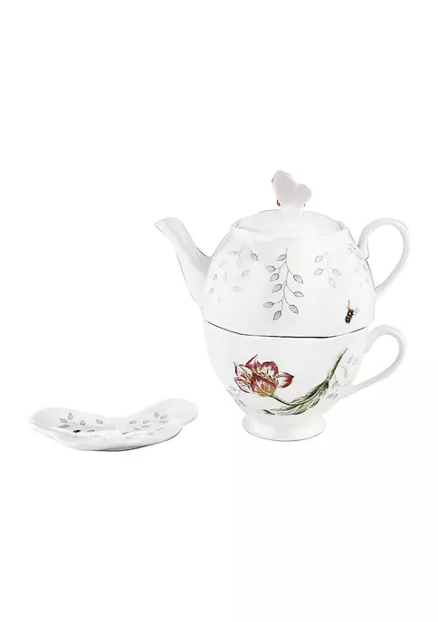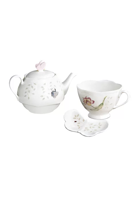 Anyone up for some tea? This charming 3-piece set from Lenox® comes in a clever stacked design with a teapot on top and a teacup below that makes it easy to store in your kitchen cabinets. A butterfly-shaped tea bag holder completes the set for a charming finish to the pretty theme. It’s crafted of beautiful white porcelain and finished in Lenox®’s iconic Butterfly Meadow floral pattern. Plus, everything is dishwasher and microwave safe.