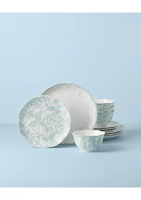 Lovely and lively, this set features flourishing natural motifs for a cottagecore aesthetic. Designed with a bold, bright sage hue and smoothly scalloped edges with grandmillenial floral accents, it creates an environment of calm and charm.