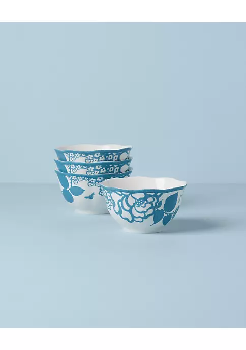 These lovely and lively rice bowls feature flourishing natural motifs for a cottagecore aesthetic. Designed with a bold, bright saffron hue and grandmillenial floral accents from edge to edge, they add warmth to your home with their charming details.