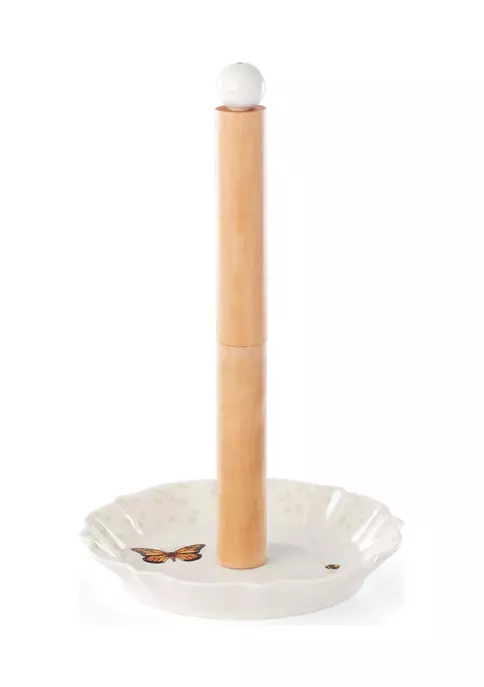 Spruce up your kitchen counter with this charming paper towel holder from the best-selling Butterfly Meadow collection by Lenox®. Crafted of pristine porcelain and decorated in a beautiful floral and butterfly pattern with feminine scalloped edges, it’s a small piece that makes a big impact.