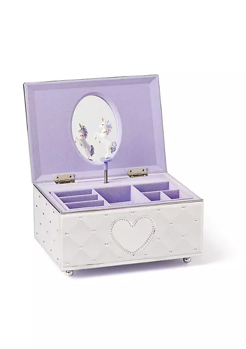 A delightful gift for any child, our Childhood Memories musical jewelry box is a one-of-a-kind piece that they will treasure forever. Our best-selling piece now features a beautiful unicorn at the center that spins to the tune of “Fur Elise” on a lush fabric backdrop.