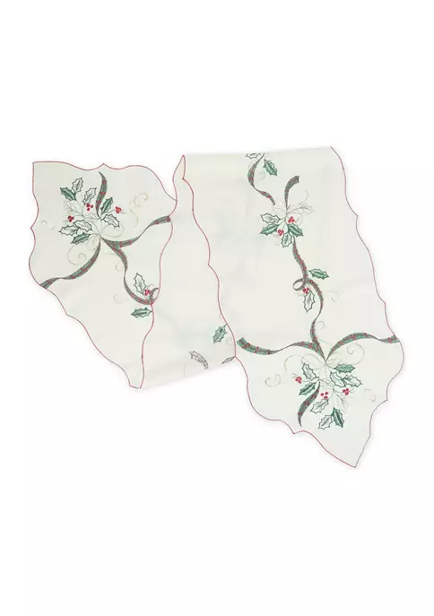 This Lenox® table runner will make your Holiday dinner parties complete, marked by an embroidery of lovely mistletoe and ribbon.