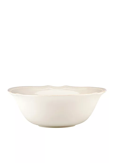 Crafted of durable ceramic stoneware and featuring a delicate scalloped border with raised dots, this elegant large serving bowl is a smooth, clean white that takes casual dining to the next level. This item is microwave and dishwasher-safe, for added convenience.