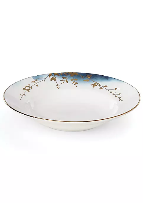Naturally chic, the Highgrove Park Rimmed Bowl adds subtle elegance to soup and pasta dishes. Understated watercolor effects in calm blue shades are accented by shimmering microwave-safe gold floral silhouettes. This durable bone china bowl is microwave and dishwasher-safe.