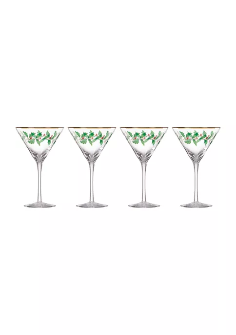 Cheers to Christmas spirits! Celebrate the holiday season with this set of four stunning martini glasses featuring a decal of the iconic Lenox® Holiday holly and berry pattern. It’s the perfect gift for the host in the family!