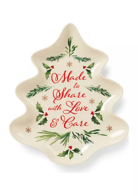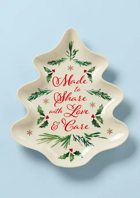 Every host needs a stunning plate in the shape of a Christmas tree for display cookies made with love. Crafted of porcelain and decorated with a bright green rim, this plate fits in with the rest of your Holiday collection while adding a new, thoughtful piece to your kitchen counter.
