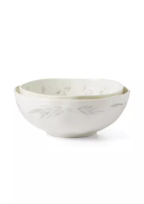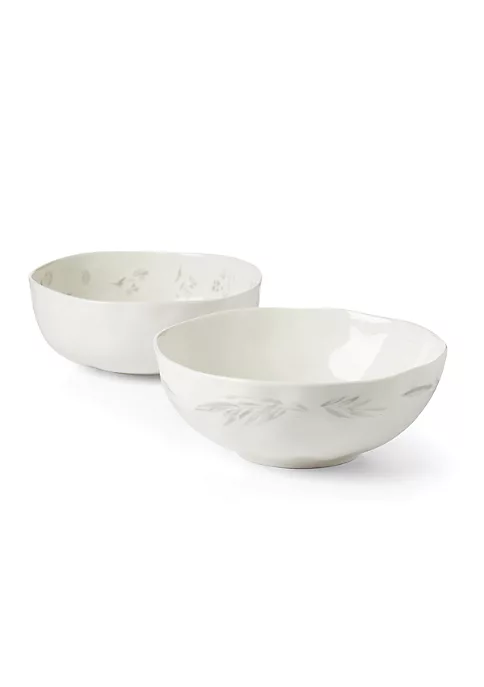 Simplicity meets style with these additions to the Oyster Bay collection, a sister pattern to best-selling Blue Bay. Each bowl lends a calming appeal to your kitchen with its organic shape and natural, watercolor-inspired art in soft grey. A subtle speckle backdrop gives the impression of texture on durable porcelain.