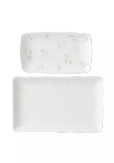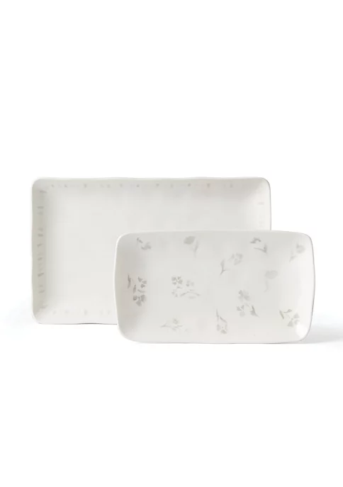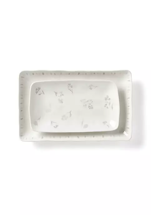 Simplicity meets style with these additions to the Oyster Bay collection, a sister pattern to best-selling Blue Bay. Each piece lends a calming appeal to your kitchen with its organic shape and natural, watercolor-inspired art in soft grey. A subtle speckle backdrop gives the impression of texture on durable porcelain. Dishwasher and microwave safe.