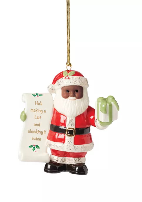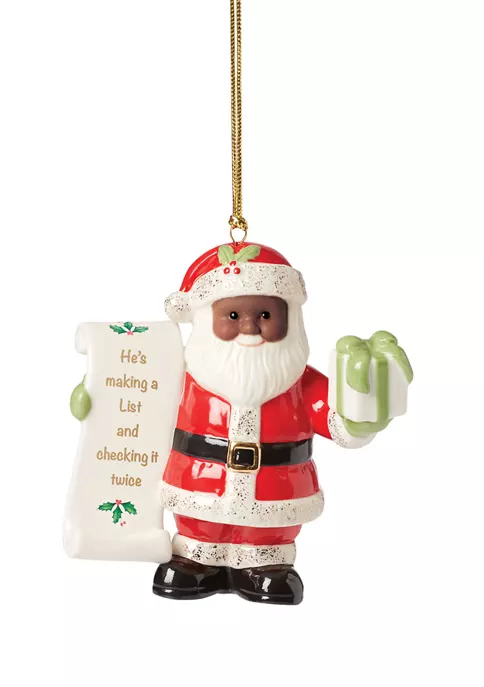 This sweet seasonal Santa is ready to bring you endless Christmas cheer. He’s wearing his bright red suit and carries his famous list (plus an extra gift). Featuring glittering gold accents and a holly jolly smile.