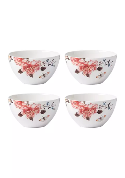 Open your home to a lush English garden with the Sprig & Vine collection. Inspired by the beauty of vintage textiles, this set of four all-purpose bowls combines birds and bright botanicals for a backyard aesthetic that will bring new life to your table.