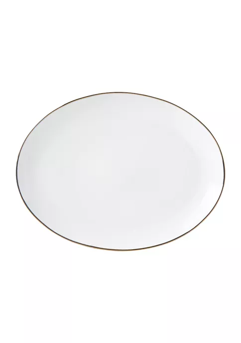 This 14.5-inch oval platter from Lenox® has a gentle shimmer of microwave-safe gold accents along its edge, for a hint of warmth. The simple, clean lines keep the plate casual enough for family dining and weeknight meals. Crafted of durable ceramic porcelain, this item is dishwasher-safe, for added convenience.